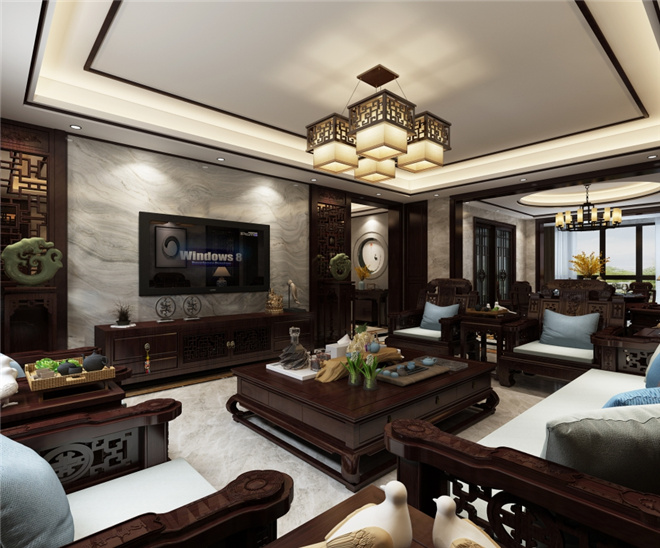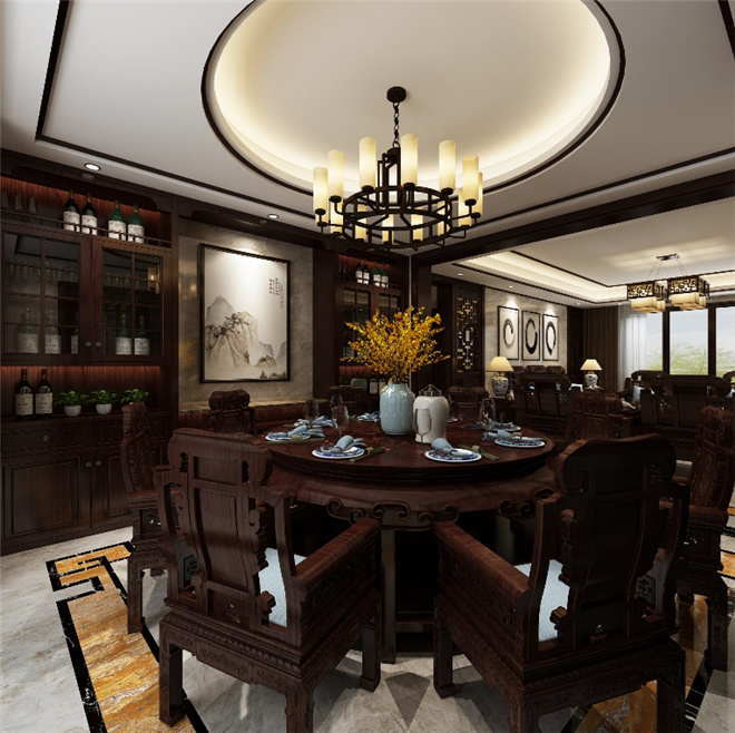 增加了空间的明亮度,给人一种清新大气的感觉。客餐厅陈设着传统的红木家具,庄重而典雅,浑厚的历史氛围和文化底蕴扑面而来。名匠装饰家装设计效果图