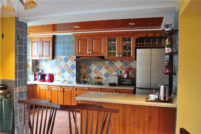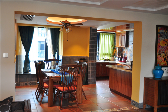 通过对泰式风格的了解来拿捏颜色的对比搭配,降低了家具的厚重感,体现出东南亚的古朴。同时考虑到实用方面,王工在客厅和厨房还重点设计了许多储物收纳的空间。名匠装饰装修效果图