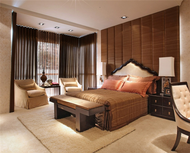 本案的业主是个时尚的年轻人,崇尚自然,周工在与他洽谈时了解到他因为平时工作繁忙,希望能在一天忙碌后回到家中,就像是回归自然一般心情得到放松。于是根据业主的喜好和需求,周工在造型上主要使用的是对称的木结构;色彩上,以温馨淡雅的中性色彩为主,局部点缀艳丽的红色,自然温馨中不失热情华丽;材质上,运用壁纸、实木等,演绎原始自然的热带风情。名匠装饰室内装修效果图大全