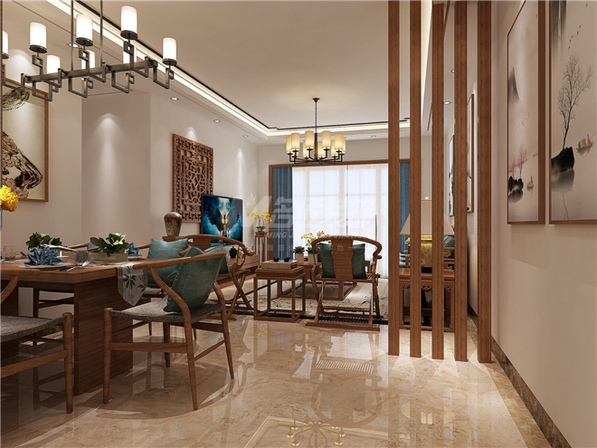 【滨海悦城】新中式风格效果图,名匠装饰家居装修效果图