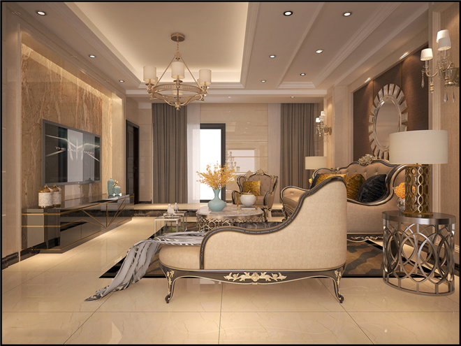 简约欧式风格集成了传统欧式风格的装饰特点,在设计上追求空间变化的连续性和体型变化的层次感,因此在室内采用的地毯、窗帘、床罩等都带有特别的图案。名匠装饰别墅装修效果图