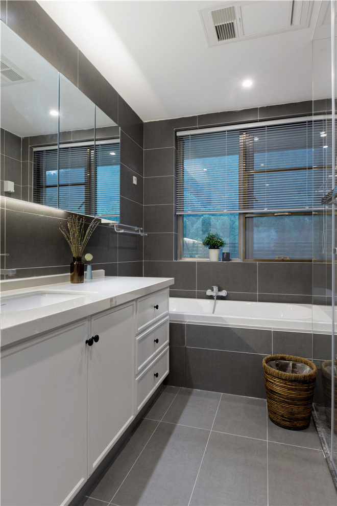 3、将次卫的洗衣机位置取消,靠窗放入浴缸,并做到四分离。