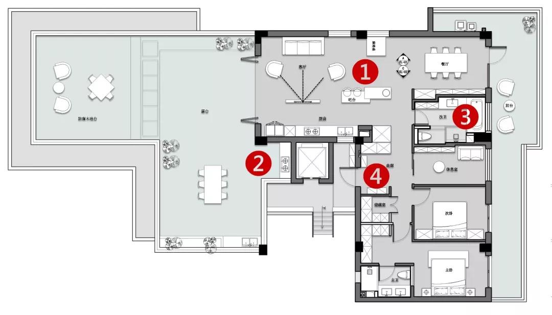建筑面积:140㎡;阳台花园:130㎡