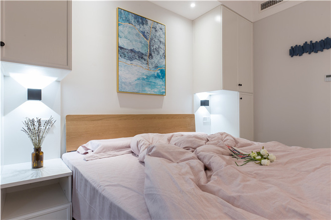 4、将门厅两边形成一个独立的储藏间和一个转角鞋柜加储物柜,让视觉空间得到了延伸。
