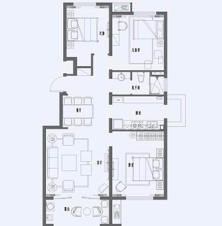 户型:三居 风格:地中海 面积:113㎡ 造价:6万元