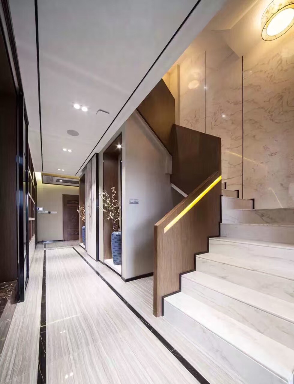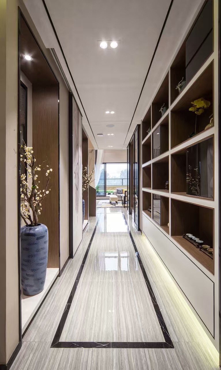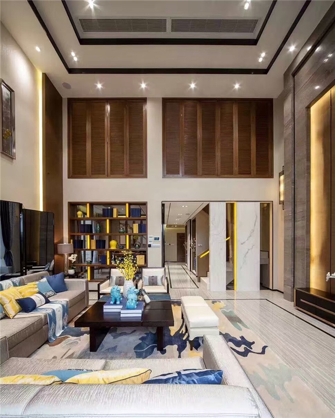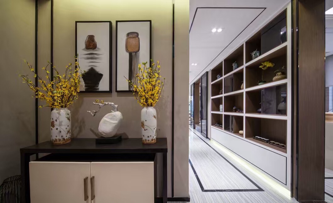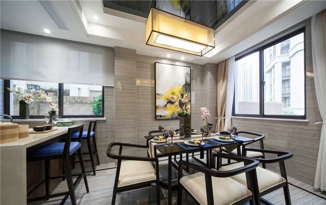本属于碧桂园小区,外观也隶属中式风格,两者结合,融为一体。业主比较传统,但又比较年轻,不想太显老气,最终以“新”为主调